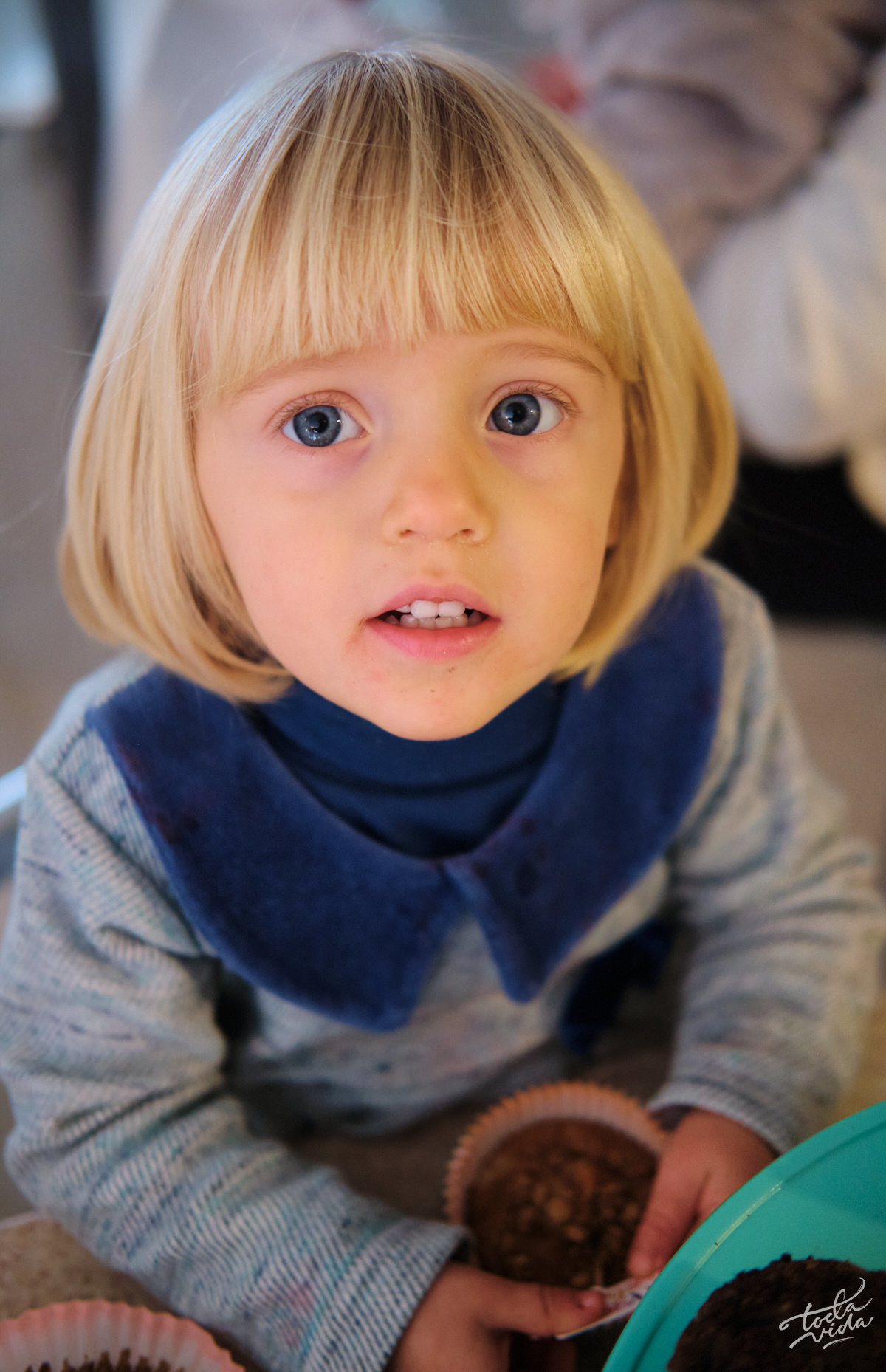 Teresa comendo frutinhas na sua festa de aniversário em Florianópolis
