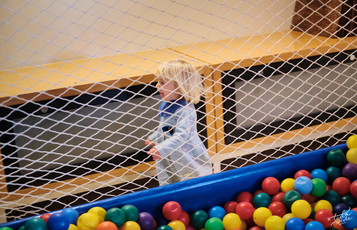 Teresa sorrindo pra camera em seu segundo aniversário infantil no centro em Florianopolis